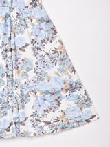 たっぷりとお花が描かれた華やかな半袖ワンピース。上品さの中に、エポレット付きでカジュアルな印象も併せ持った一着。肌馴染みのよい薄手のオールコットン生地です。