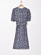 上品な花柄が魅力のワンピース。一枚でさらっとキマる同柄のベルト付きが嬉しいポイント。さらっとした動きの出やすい生地感です。