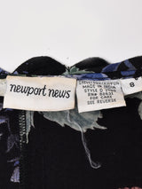 ブラックベースの上品な花柄が魅力的な半袖ワンピース。袖とネックラインのスカラップデザインがキュート。薄手の柔らかなレーヨン生地です。