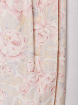 エレガントな花柄にお花モチーフのボタンがマッチした上品なワンピース。タイトなスカートシルエットと胸元のレースチーフがレトロな印象を添えます。おそらくレーヨン素材のさらっとした薄手の生地です。