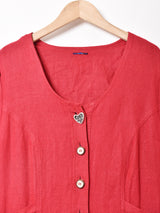 ハートのシルバーボタンがアクセントに効いたチロリアンワンピース。スリーブやウエストのデザイン性の高さにうっとりします。おそらくリネン×コットン素材で、柔らかく肌触りのよい生地です。