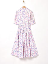 優しい色味で描かれた花柄が華やかな開襟ワンピース。ふんわり広がるスカートのフレアシルエットが魅力的。薄手の柔らかなコットン生地です。
