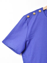 肩にあしらったゴールドのボタンをスパイスに効かせた半袖ワンピース。さっぱりとした薄手の生地で、裏地はありません。