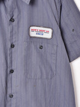 アメリカのワークウェアブランド、レッドキャップのパッチ付きシャツワンピース。落ち着いた色味のストライプがクールな一着。薄手の柔らかな生地です。