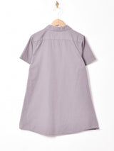 ポップなパッチがアクセントに効いたワークシャツワンピース。雰囲気のよいニュアンスカラーが魅力。薄手の柔らかな生地です。