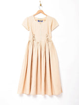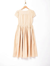 サイドのレースアップでフィット&フレアシルエットを楽しめるワンピース。リネン/コットン混紡のボリュームがありながら爽やかな生地が特徴的で、フレンチスリーブやシェルボタンなど品のよい涼しげなディティールも魅力の一着です。
