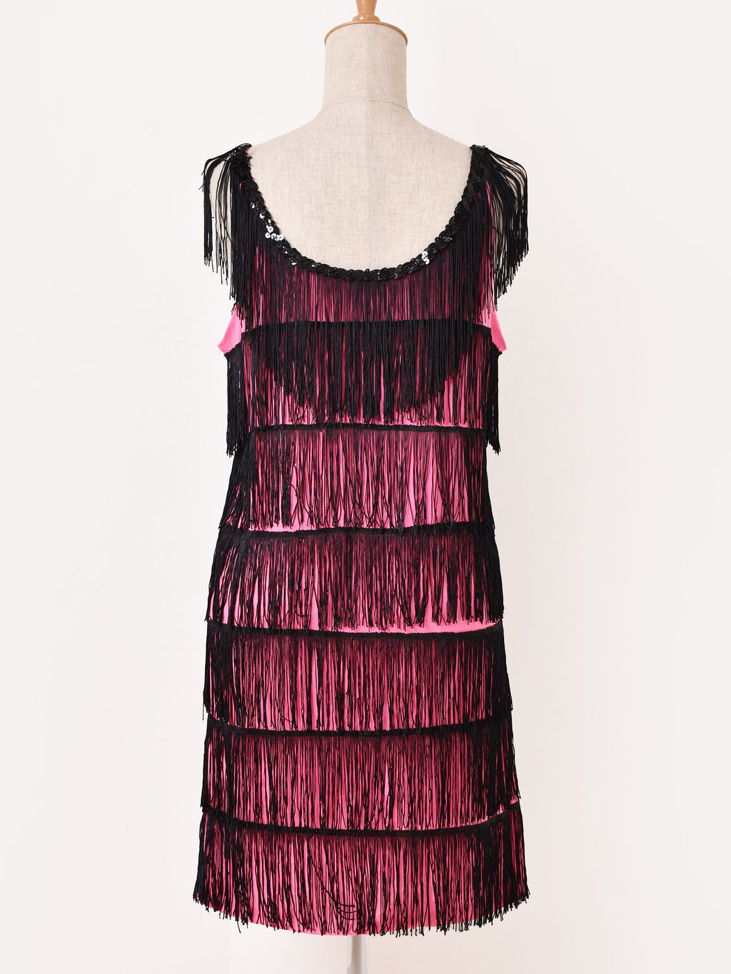 たっぷりのフリンジに、胸元にはスパンコールをあしらったノースリワンピ。インナーやトップスの上からレイヤードし、コーディネートのプラスワンアイテムとしてお使いいただけます。