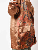 花柄とドットの織柄、更にサテン生地のパターン切り替えが魅力的な雰囲気のテーラードジャケット。レーヨンとアセテートの混紡なため、なめらかでしっとりしており、織やサテンの光沢も上品にきらめいています。