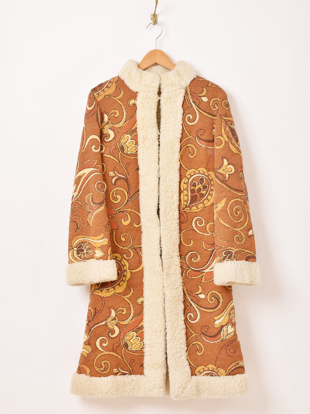 オリエンタルなデザインに細身のロング丈で、ゴージャスな雰囲気に仕上げてくれるロングコート。シェルはニット、ライニングはボア仕様であたたかな見た目もポイント。秋冬コーデの主役になること間違いなしの一着です。