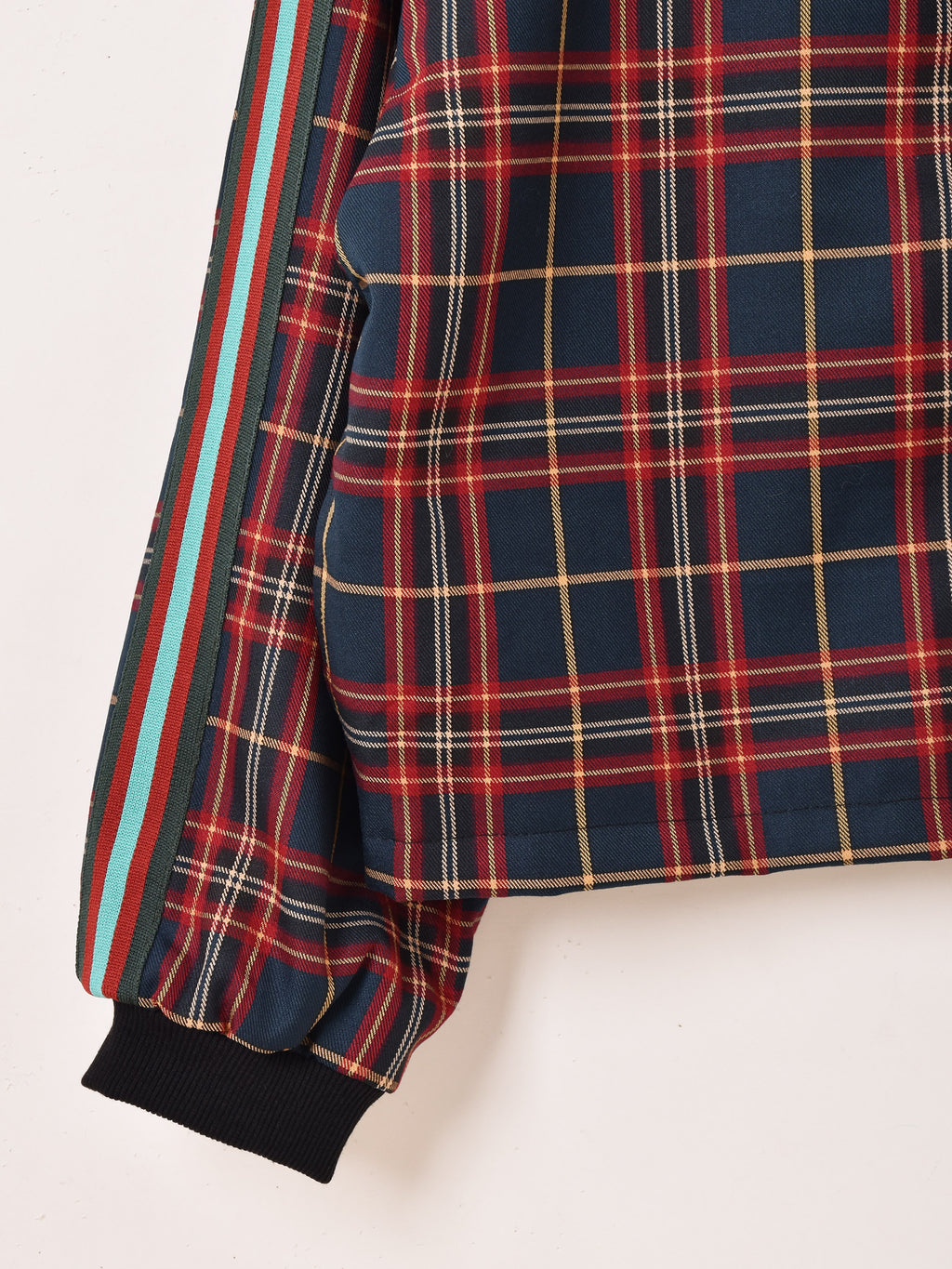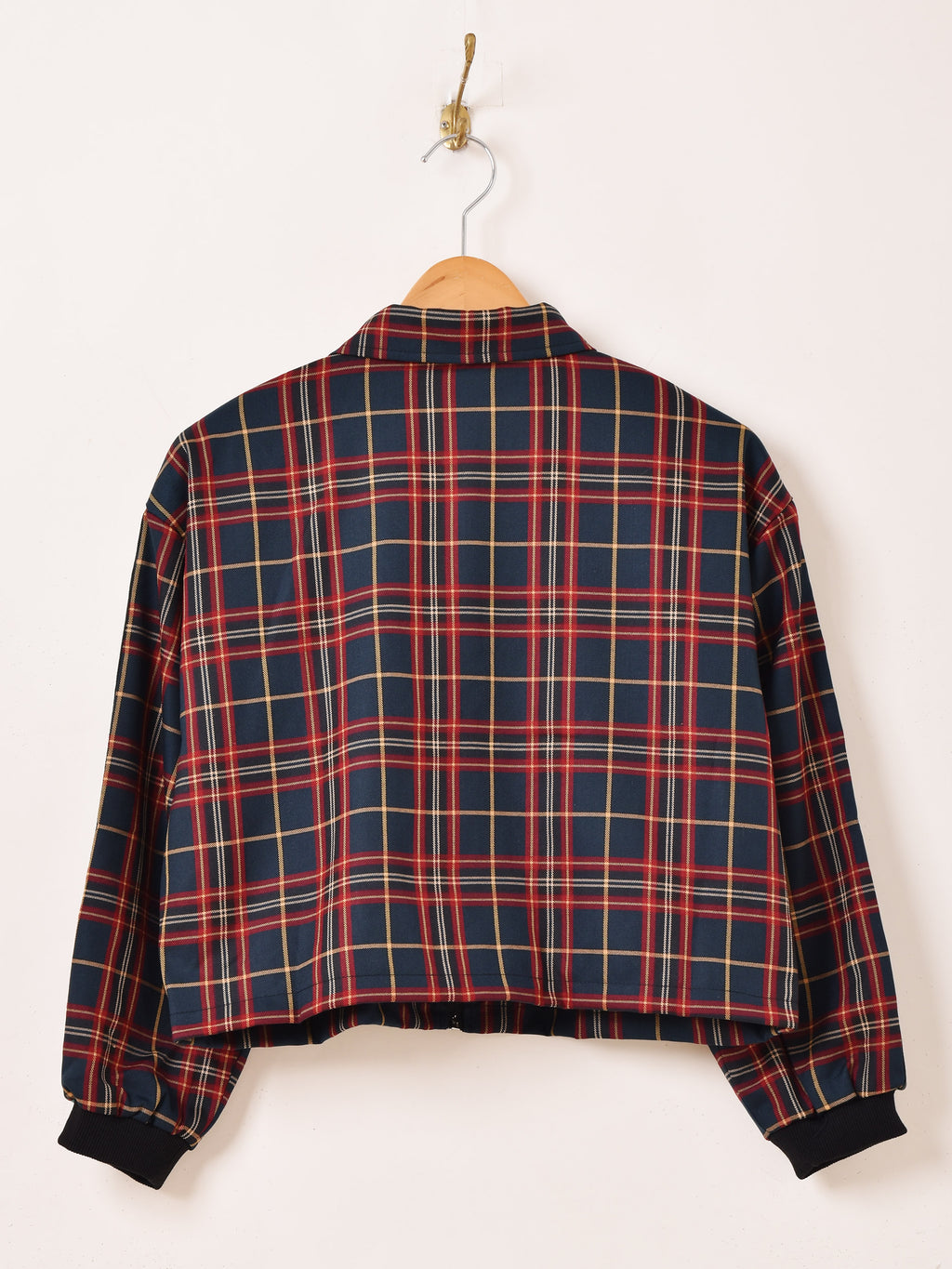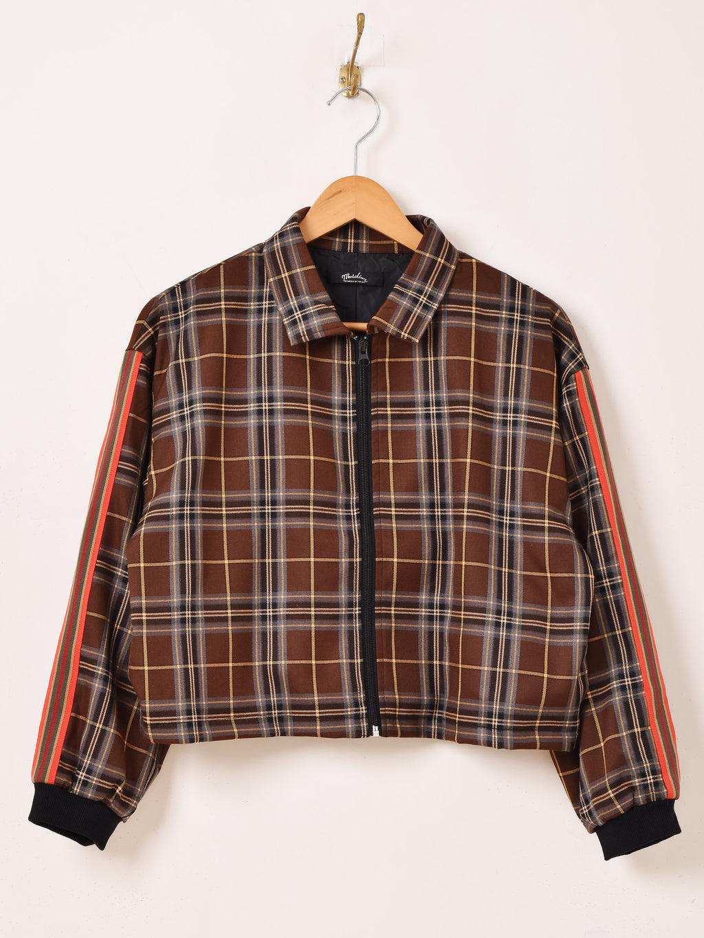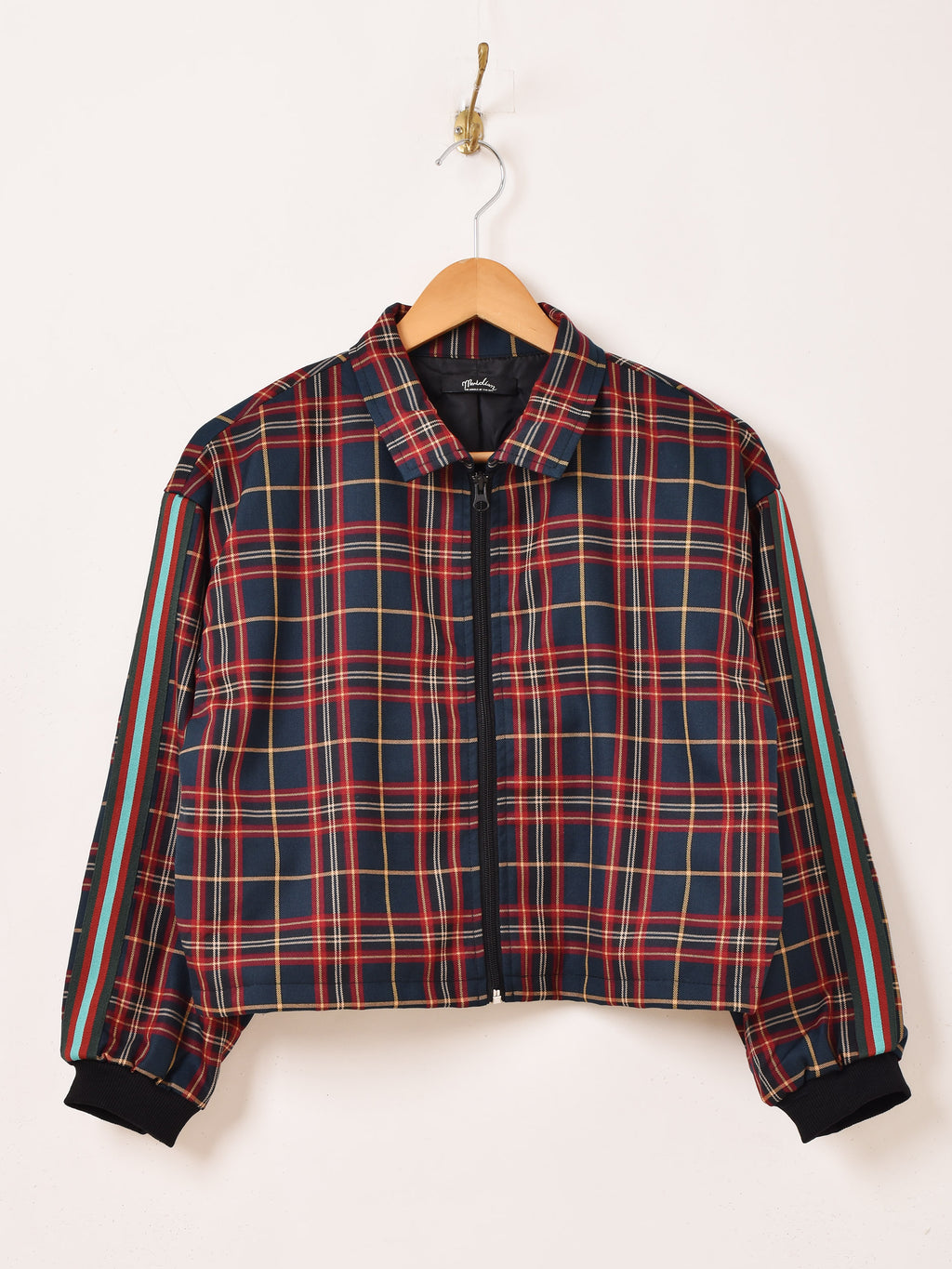 ブリティッシュな雰囲気のチェック柄が可愛いジップアップジャケット。身幅にゆとりがありますが、ショート丈なのでルーズなこなれ感を演出してくれます。袖にはラインテープをあしらい、スポーティーな雰囲気も◎。