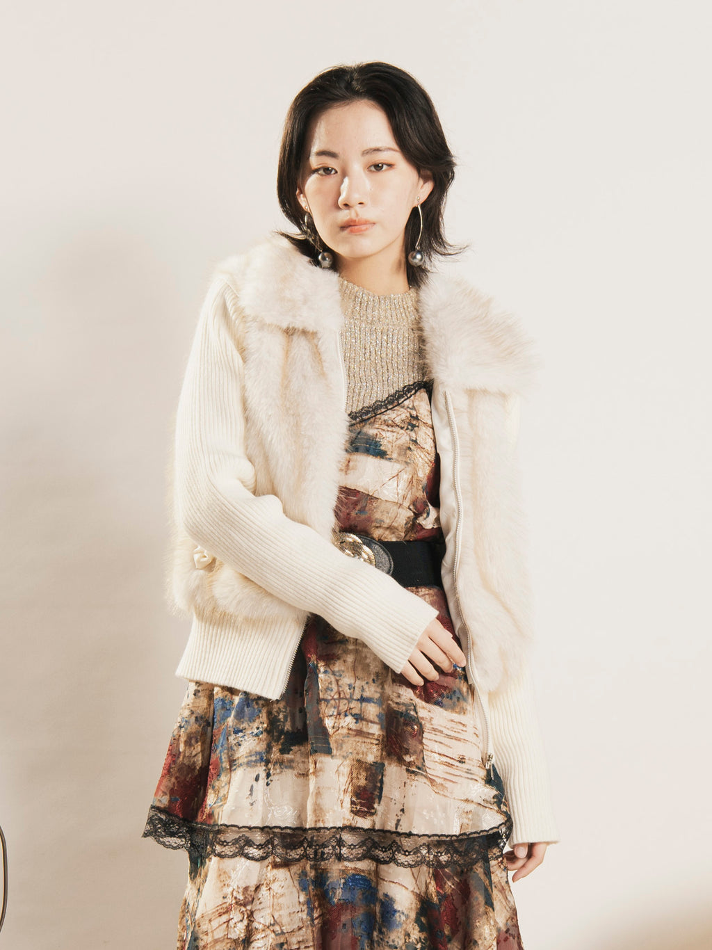ゴージャスなフェイクファーをあしらい、シーズンムード漂うジップアップジャケット。袖を取り外せばベストにもなる2way仕様で、それぞれ違った着こなしを楽しめます。旬な韓国系ストリートファッションやY2Kファッションにおすすめです。