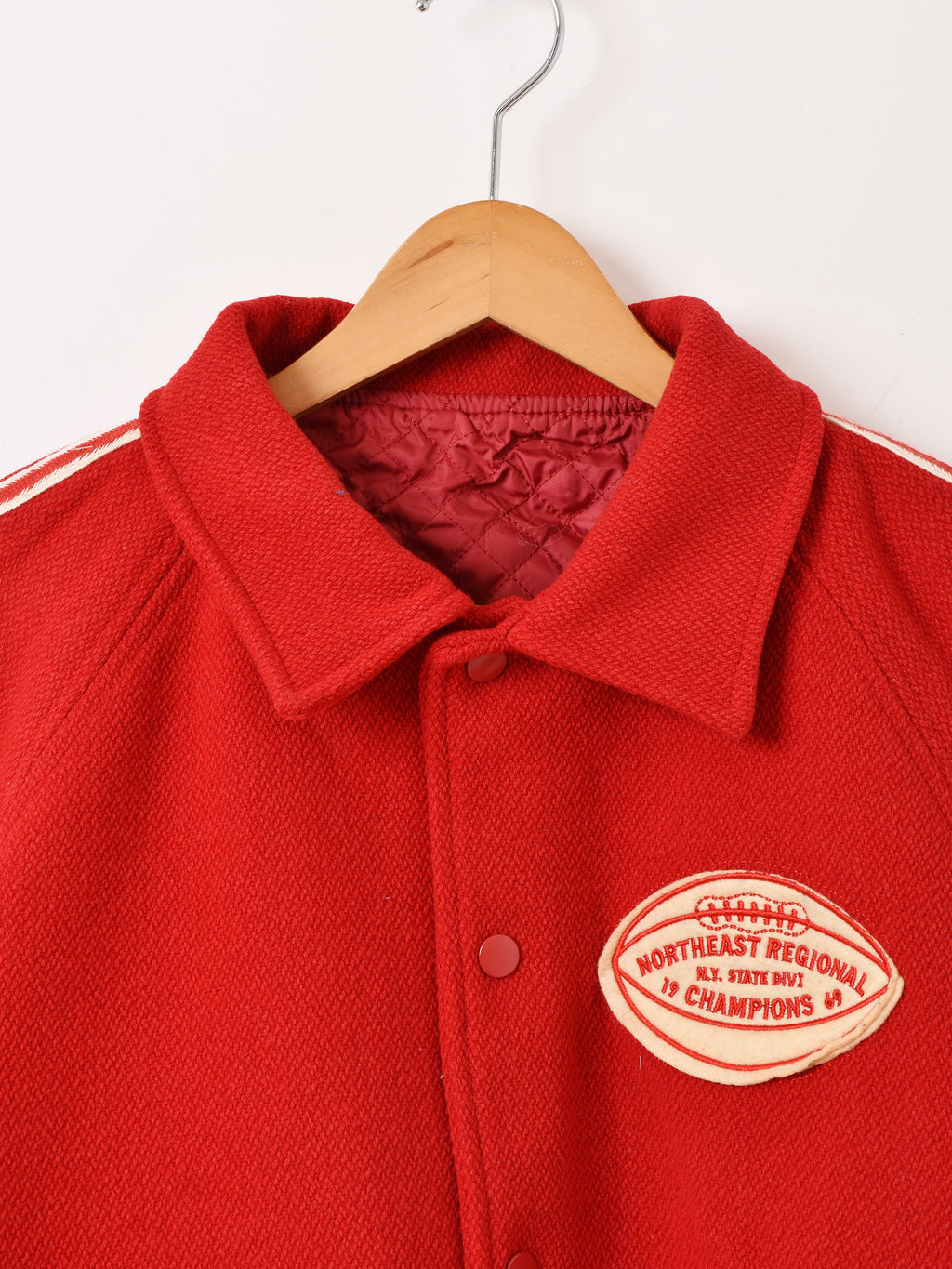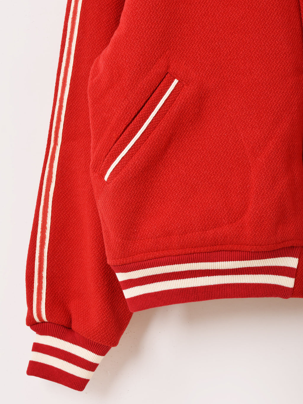 ヴィンテージのようなデザインが魅力的なスタジャン。胸元のカレッジワッペンに、スリーブにはラインデザインをあしらい雰囲気たっぷりに。レディースに嬉しいサイズ感で、程よいショート丈がバランス良く着こなせます。裏地はキルティング仕様です。