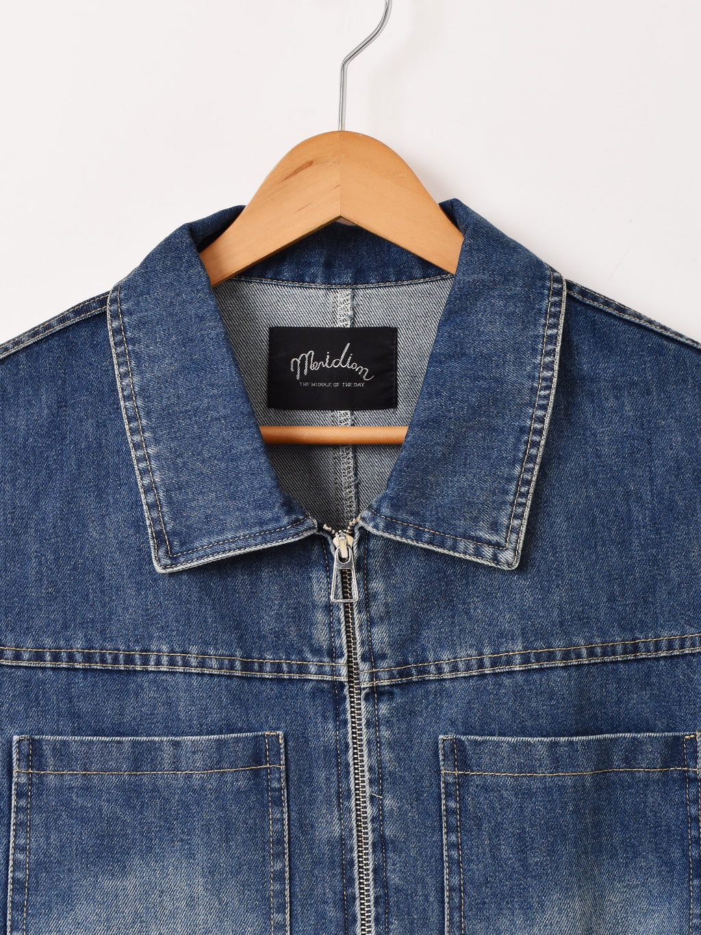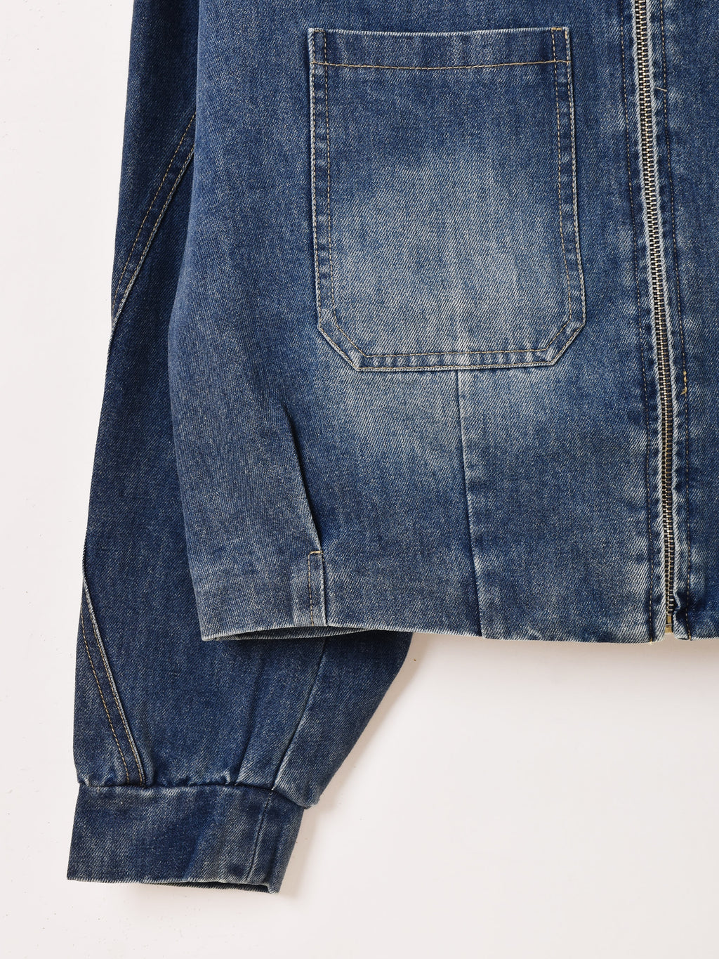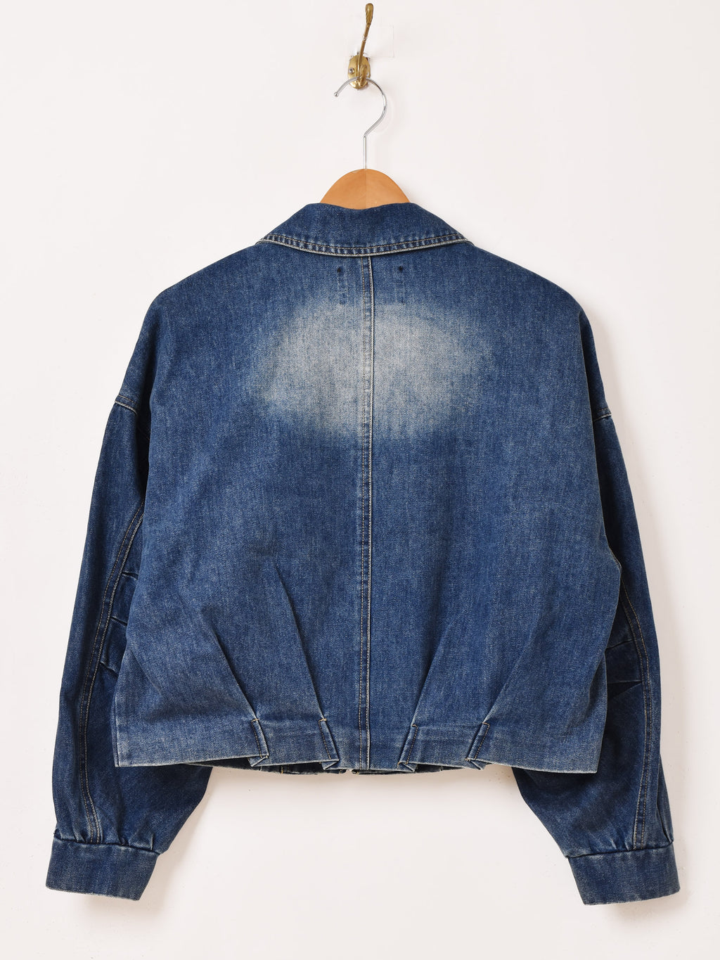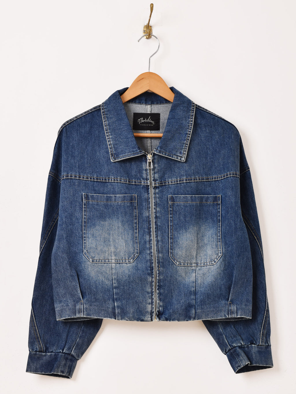 フロントのジップアップにWポケットがアクセントになったデニムジャケット。裾にはタックが入っており、クロップド丈ですっきりとした着こなしに。ややオーバーなシルエットがこなれたスタイルを演出してくれます。