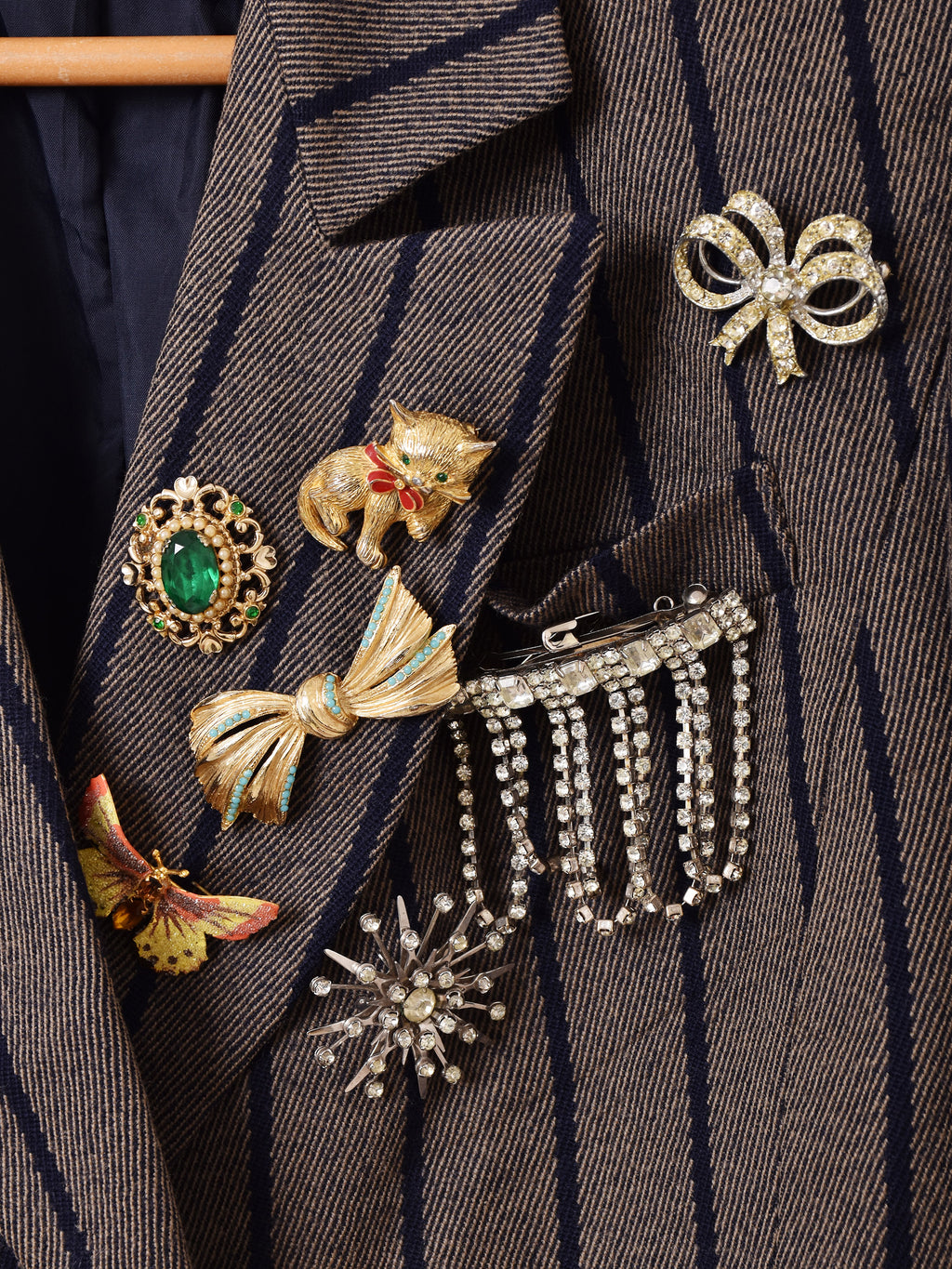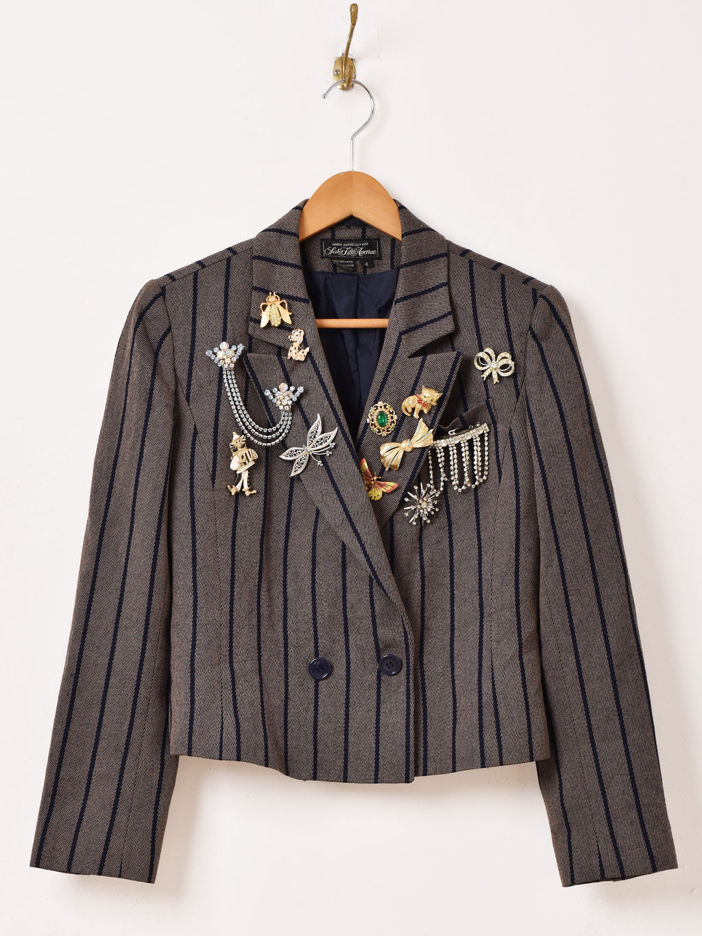 ヴィンテージブローチ付き ストライプ柄 テーラードジャケット