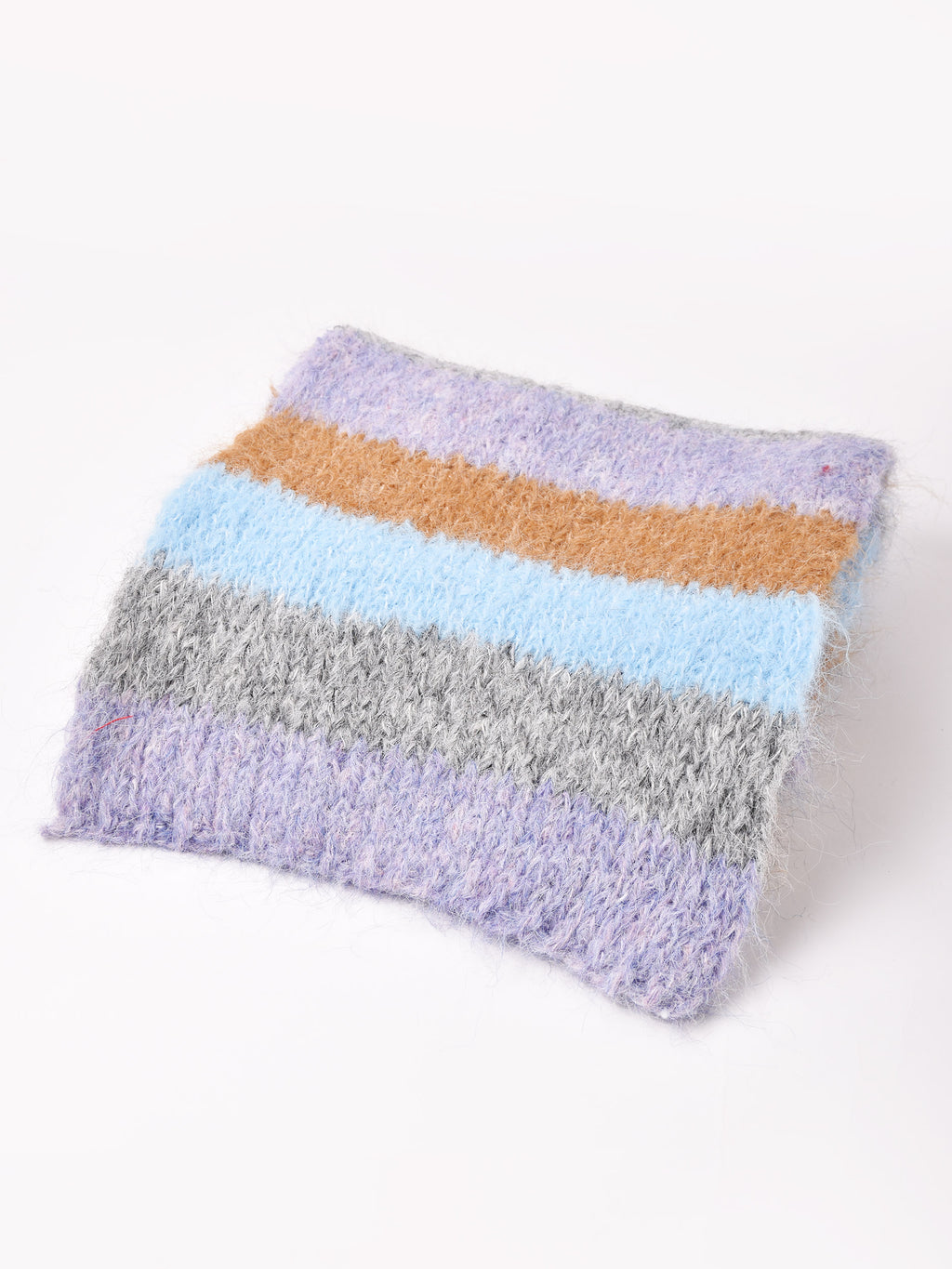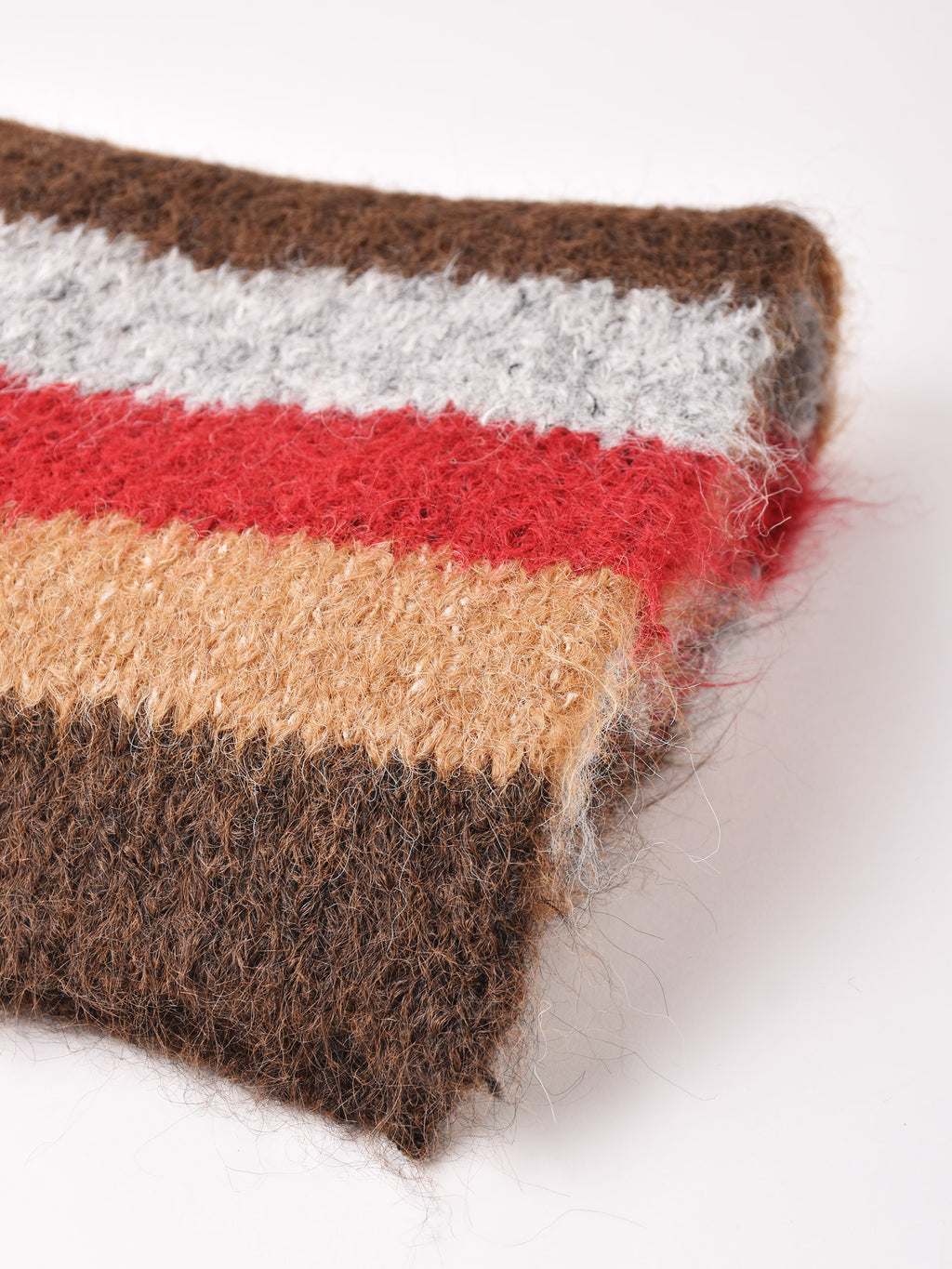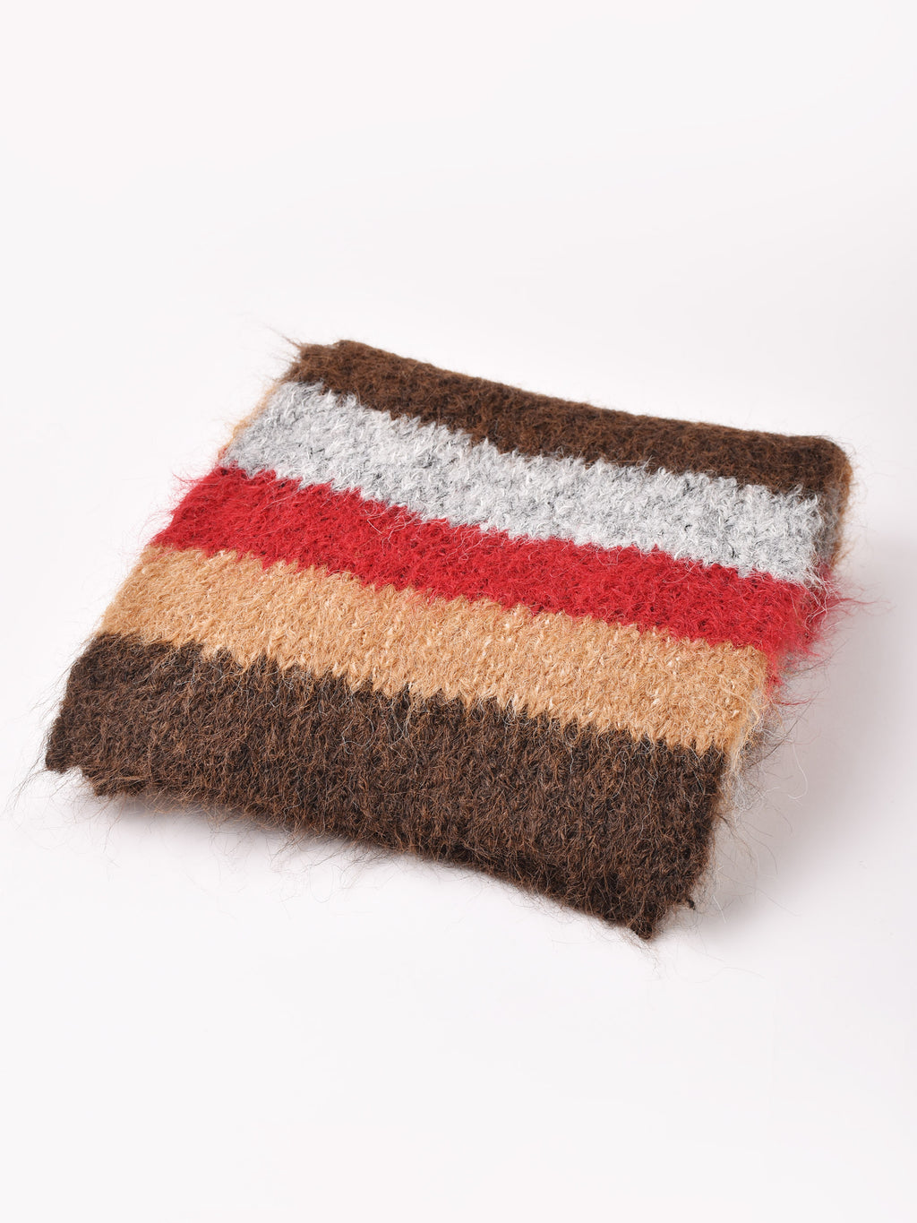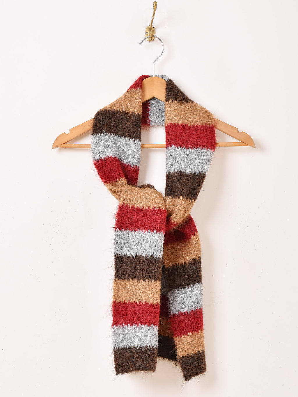 カラフルなボーダー柄のマフラー。暗くなりがちな秋冬コーデのアクセントに◎。ふんわりと柔らかなニット生地で仕立てた、あたたかみのある一点です。