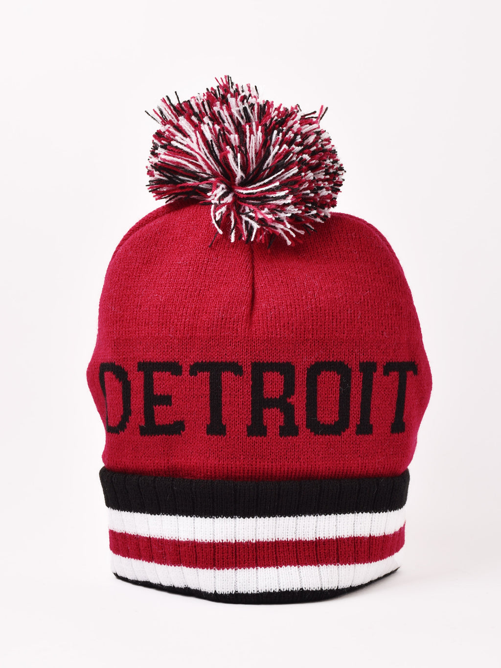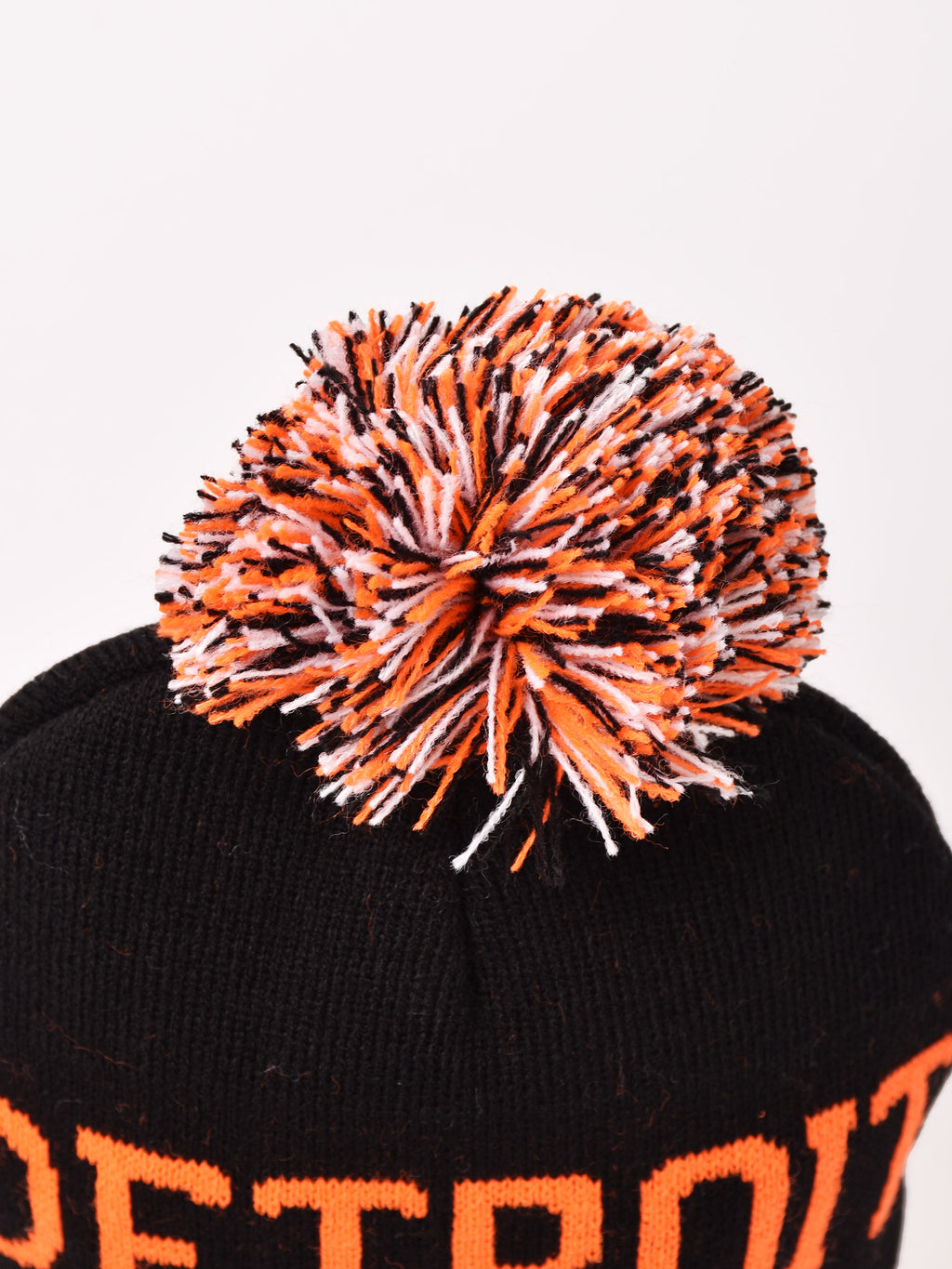 【3色展開】ポンポン付き ロゴ ニットキャップ「DETROIT」