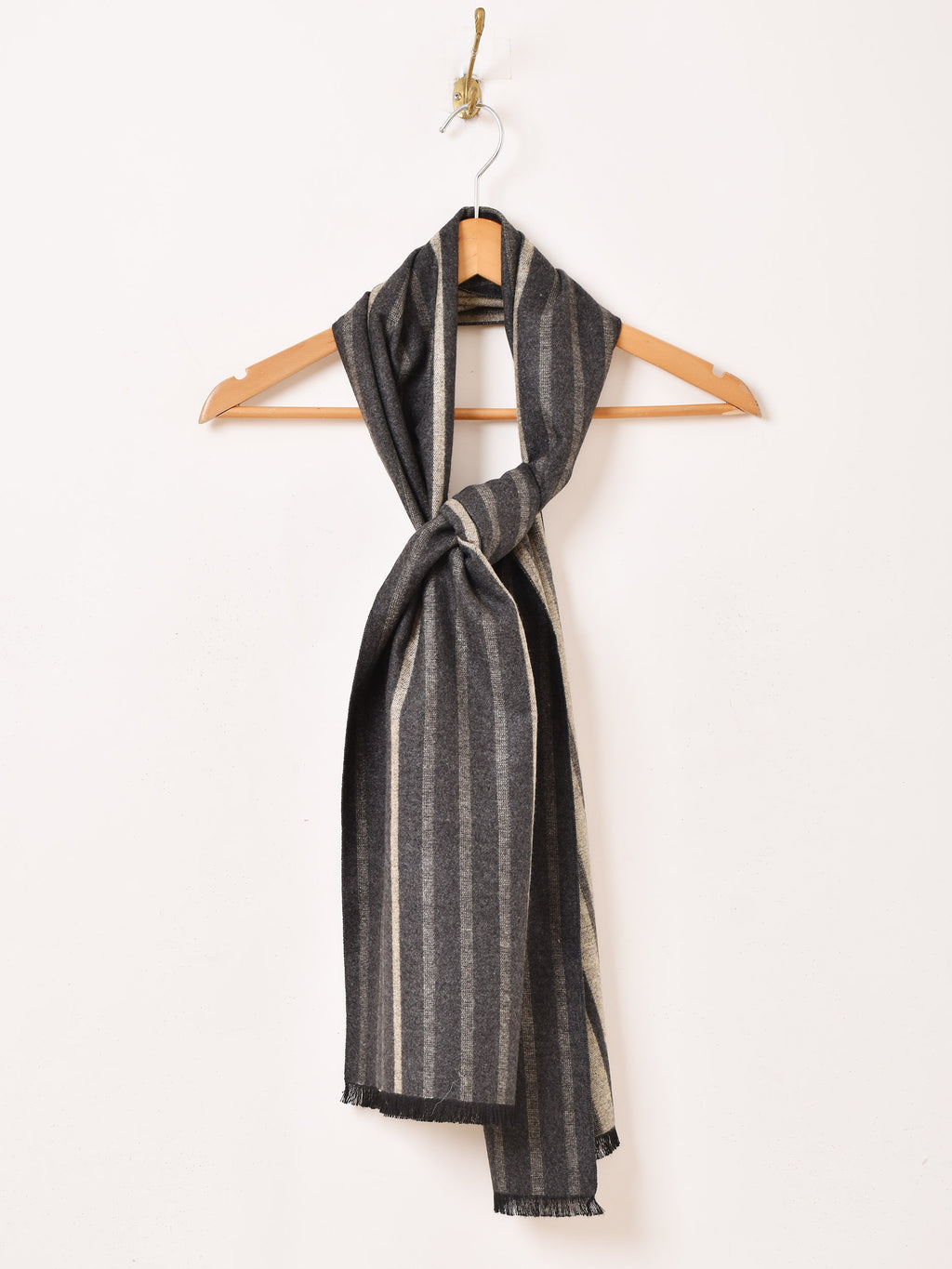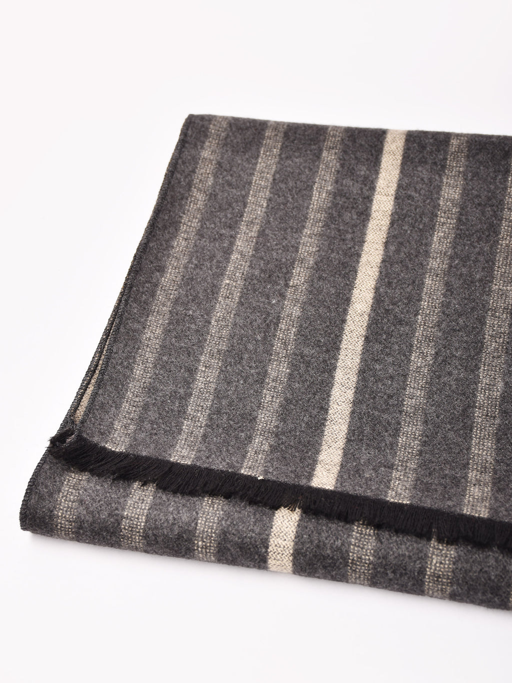 シックなカラーで使い勝手の良いマフラー。ビジネスシーンにもおすすめ。さらっと柔らかな肌触りです。