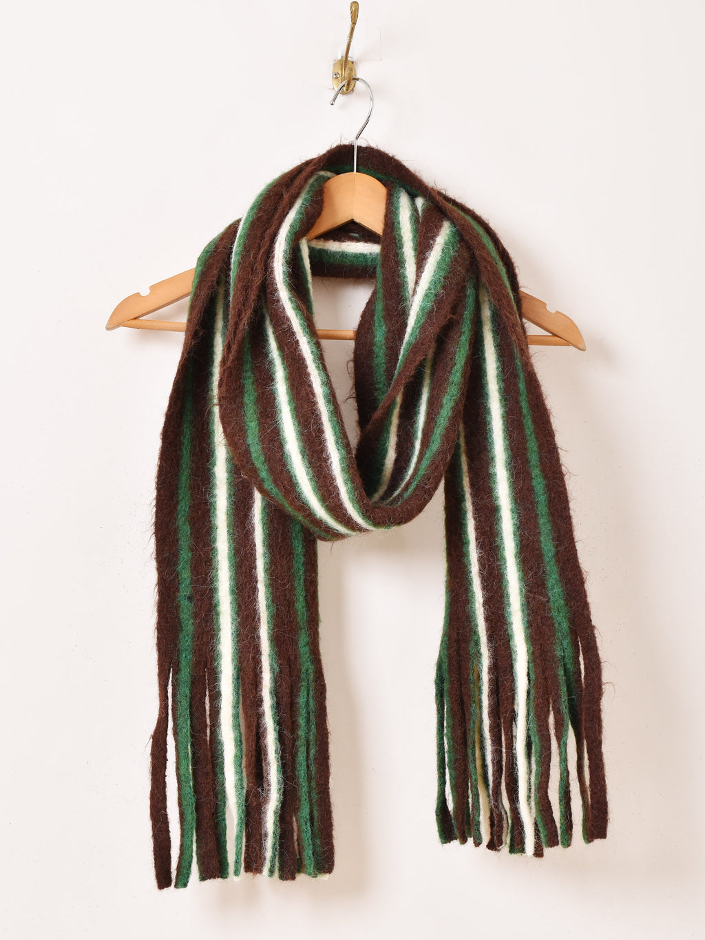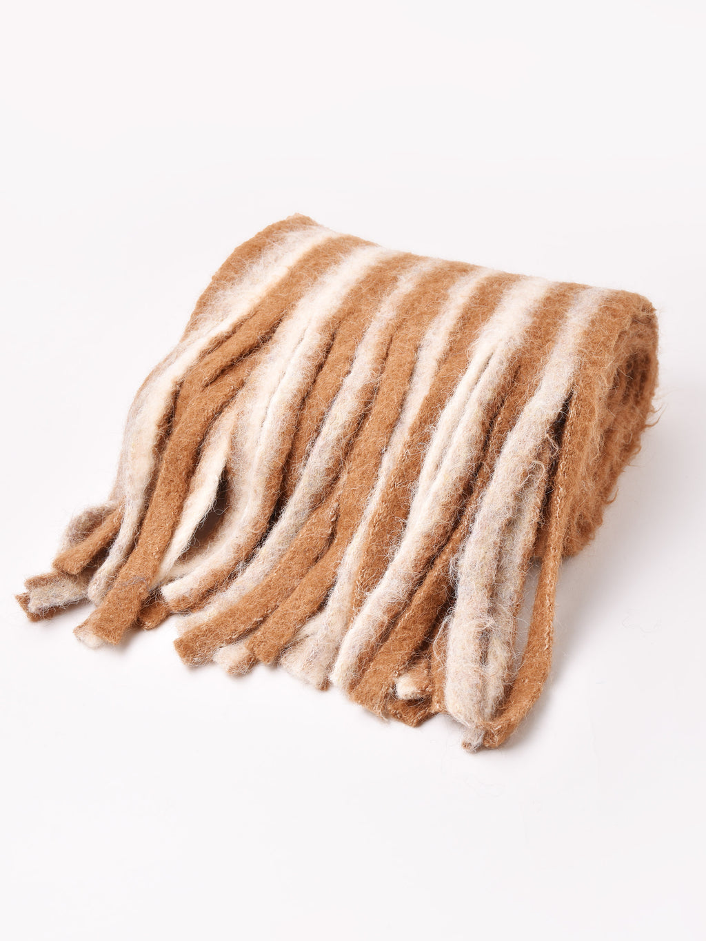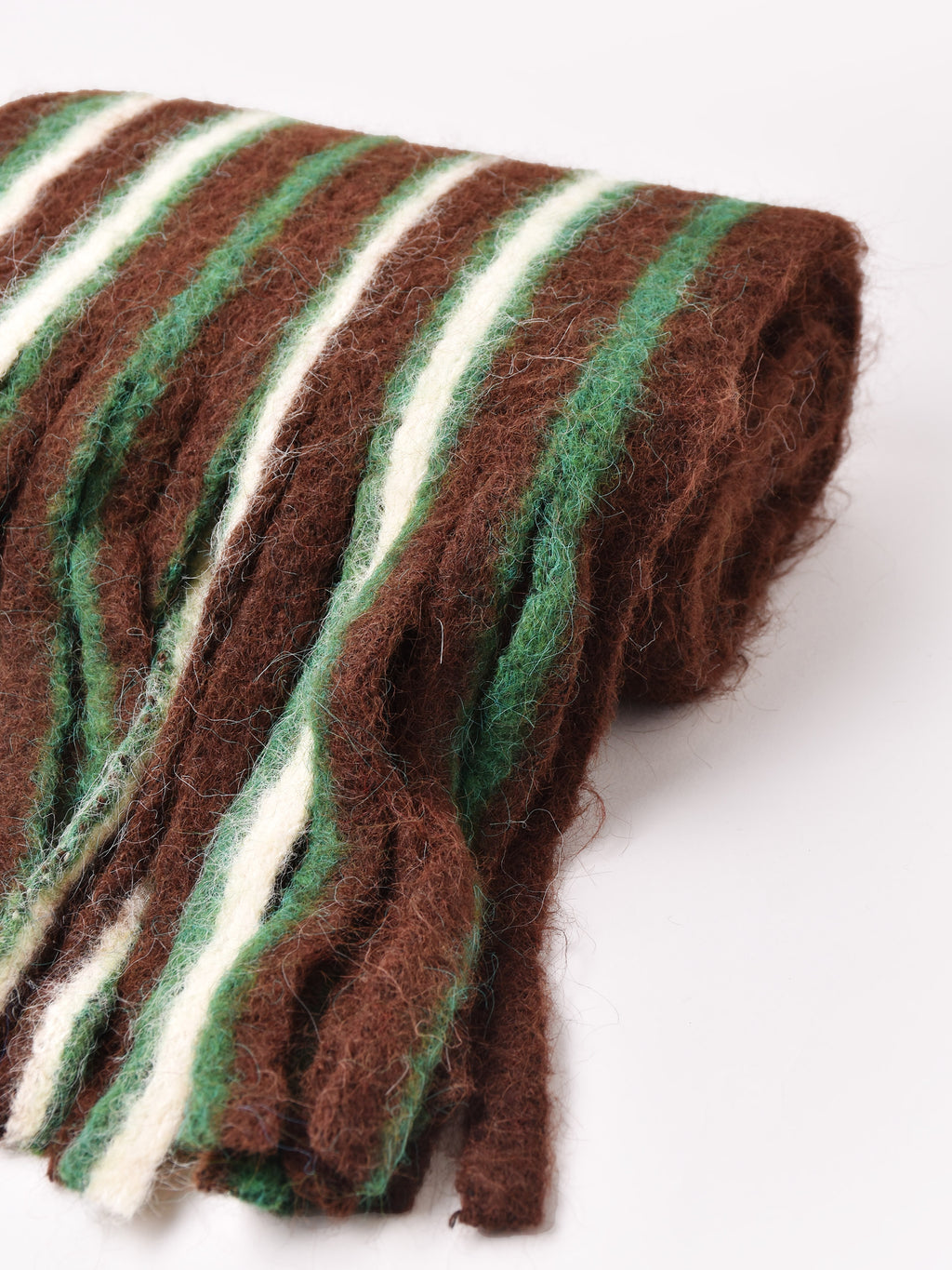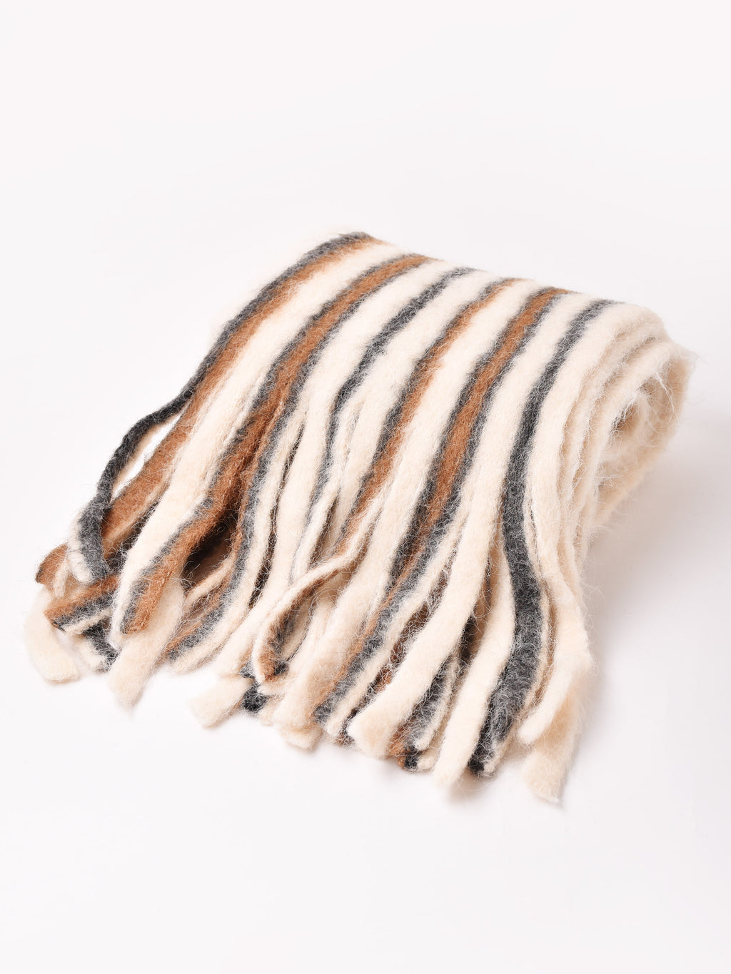 シンプルで使い勝手の良い、ストライプパターンのマフラー。柔らかな肌触りのニット生地で仕立てた、あたたかみを感じる一点です。