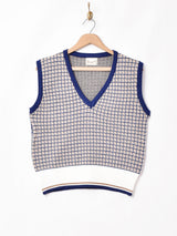 細かなチェック柄が柔らかく、ふんわりとした雰囲気のニットベスト。肌触りのよいアクリルニットです。