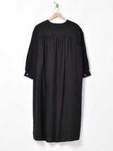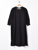 比翼仕立てのシンプルさと、ざっくりとしたシルエットがリラックスムードの一着。リネン混で長めの袖ながらも風通しのよいアイテムです。