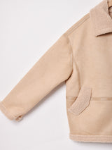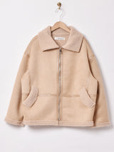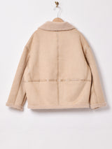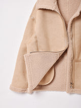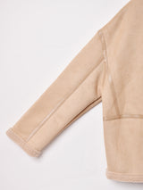 ムートンジャケットのような雰囲気ながらも、柔らかく軽めで羽織やすいボアジャケット。表面はなめらかな生地感です。