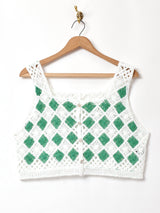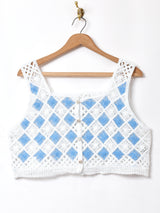 繊細なクロシェ編みをあしらったコットンニットベスト。軽やかな着用感でレイヤードスタイルにおすすめのアイテム。100%コットンのしっかりとした糸を使っています。