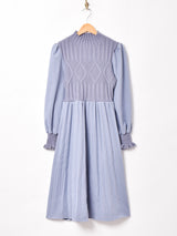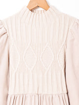 ピーチスキン地にポイントでニット地をドッキングした長袖ワンピース。モックネックとパフスリーブなどドレッシーなデザインを取り入れた女性らしいシルエットが魅力。しっかりとした暖かみのある生地感です。