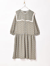 落ち着いた色合いのペイズリー柄デザインに、肩までかかる大きな襟が可愛らしい長袖ワンピース。薄手でさらりとしたポリエステル生地で、ジャケットやカーディガンなどオンしやすいです。ギャザーの入った切り替えからふんわり広がるシルエットが綺麗で、フェミニンな雰囲気をたっぷり纏う一着です。