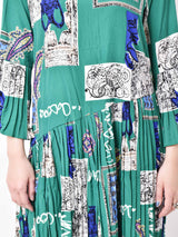 【3色展開】Meridian 総柄 プリーツデザインワンピース