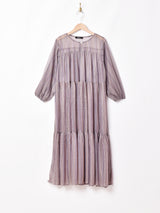 透け感が魅力的なラメワンピース。ゆったりとしたティアードデザインで着心地の良く、レイヤードすればオールシーズン着ていただけます。ホワイト、パープル、ブラックの3色をご用意しました。