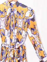 全体に入ったプリーツデザインやスタンドカラーが特徴的なロングスリーブワンピース。ストンと落ちるシルエットが上品で、共布のリボンが付いておりウエストにベルトとして巻くとバランスよく着こなせます。