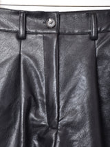 つやつやとした質感のエコレザーを使用したショートパンツ。タック入りで柔らかく履き心地の良い1枚です。