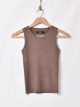 伸縮性のあるリブニット生地を使用したノースリーブトップス。肌ざわりのいい肉厚な生地感で、一枚ではもちろんインナーとしても活躍します。