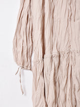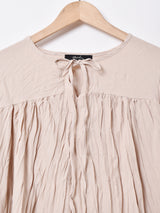 クシュっと捻じれたようなプリーツが特徴的な長袖のワンピース。袖や襟元のリボンが可愛らしいゆったりとしたデザインです。透けないしっかりとした生地感です。