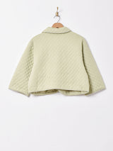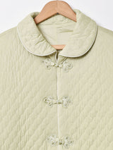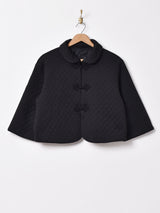 少し光沢がある生地感とチャイナボタンデザインがよい雰囲気のジャケット。ふんわりと柔らかなキルティング生地です。