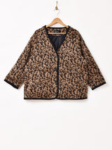 ふんわりとした生地にレオパード柄がマッチしたライトなアウター。裏地付きでしっかりとした作りです。コーディネートを引き締めてくれる一着。