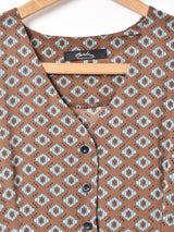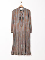 ウエストデザインが個性的な総柄ワンピース。共布のリボンがついており、首に巻いたり、ウエストに巻いてアクセントにしたり、表情を変えて楽しめます。スカート部にのみ裏地があり、さらりと落ち感の出やすい一着です。