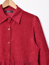 【3色展開】Meridian コーデュロイ パフスリーブ 長袖シャツワンピース