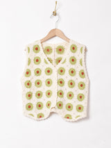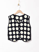 かわいらしいマーガレットが描かれたニットベスト。薄手でロングシーズン活躍してくれる一品です。