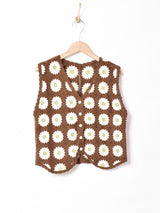 かわいらしいマーガレットが描かれたニットベスト。薄手でロングシーズン活躍してくれる一品です。