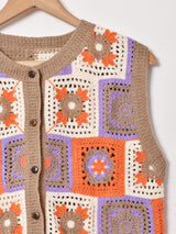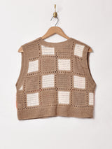 くすみベージュが全体をマイルドに仕上げた色使いがキュートなグラニー編みのニットベスト。薄手の軽やかな着心地で、1年中活躍する優秀なプラスワンアイテムです。