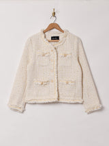 【2色展開】Meridian ノーカラー フリンジ ツイードジャケット