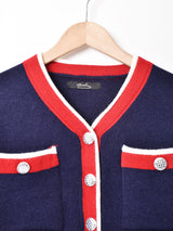 目を惹くカラーリングが魅力的なニットジャケット。シルバーのボタンがアクセントに効いています。程よく厚みのあるもっちりとした生地です。