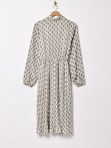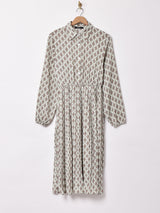 【2色展開】Meridian 総柄 長袖プリーツワンピース
