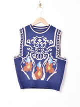 上品な印象の花が魅力のニットベスト。もっちり柔らかなアクリルニットです。