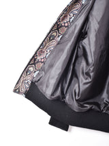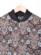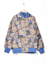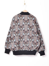 個性的な模様が目を惹くブルゾン。裏地付きで、しっかりとしつつもしなやかな厚手の生地です。柄・色違いの3色展開で、こちらはオリエンタルな雰囲気漂う落ち着いたトーンが魅力の一枚です。