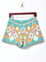 ポップなクロシェが魅力のショートパンツ。ポリエステル×ポリウレタンの裏地付きで、一枚で履ける安心感のある一着です。
