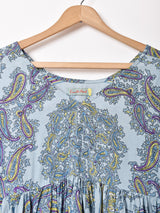 ボリューミーなバルーンスリーブが目を惹く、7分袖ワンピース。存在感のあるパターンも魅力のひとつ。動きの出やすいさらっとしたレーヨン生地で、軽やかな着心地の一枚です。