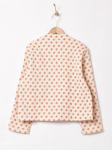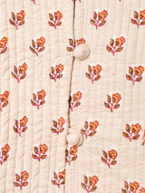 チャーミングなパターンとカラーリングがマッチした、ほっこりムードのキルティングジャケット。花柄と無地の2つの表情を楽しめる贅沢な一点。軽い着心地も魅力的な、肌触りのよいコットン生地です。