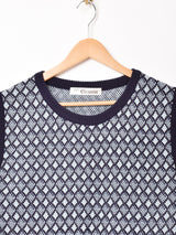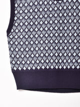 ダイヤパターンと同系色のリブが目を惹く一着。アクリル素材の柔らかな生地感です。